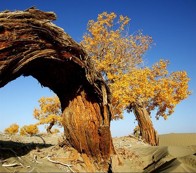 位于新疆巴音郭楞蒙古自治州輪臺縣南沙漠公路70公里處,是新疆觀賞胡楊林最佳地之一,即胡楊林公園,屬國家4A級景區(qū)。美麗的胡楊林,維吾爾語稱胡楊為托克拉克,意為“最美麗的樹”。 由于它具有驚人的抗干旱、御風(fēng)沙、耐鹽堿的能力,能頑強地生存繁衍于沙漠之中,因而也被人們贊譽為“沙漠英雄樹”。
