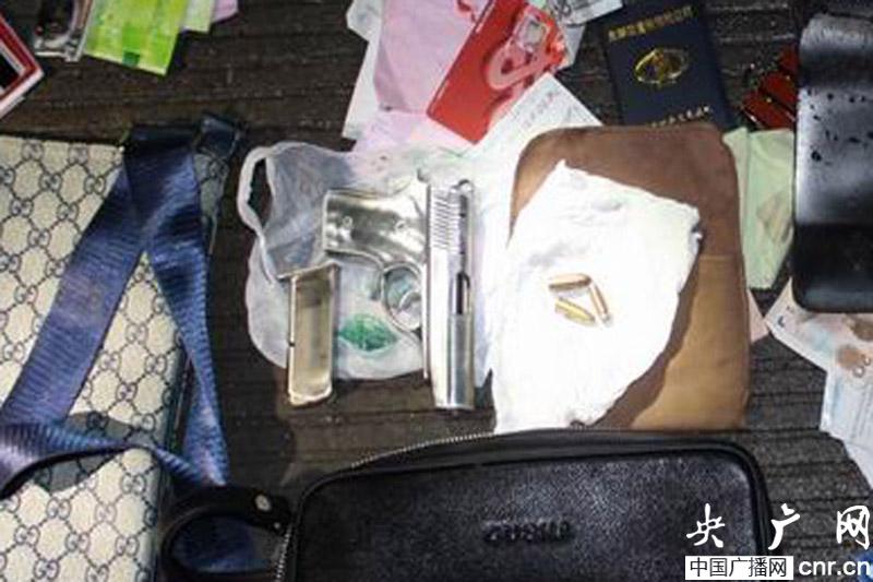 圖為查獲的仿軍用六四式手槍1支、子彈3發(央廣網發 沈積軍攝)