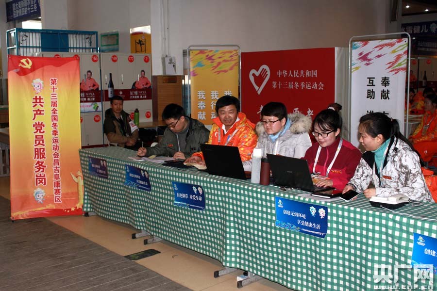央廣網阜康1月30日消息(記者張雷 阜康臺記者王新剛 郭剛)在第十三屆全國冬季運動會新疆阜康賽區天山天池國際滑雪場,人們隨處都能見到胸前佩戴共產黨員“先鋒崗”標示的500多名黨員在為“十三冬”服務忙碌的身影。