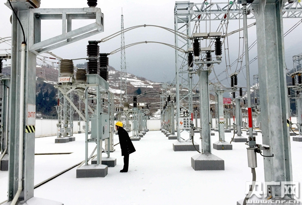 1月27日,成都供電段組織干部職工對此次降雪受影響區段變電所設備進行巡視檢查。(尹煒 攝)