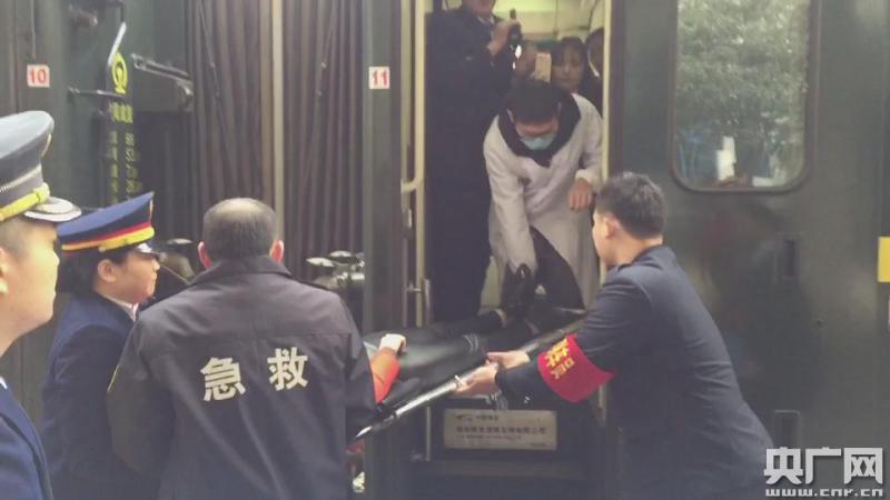 艾林濤立即撥打120急救電話,10分鐘后,救護(hù)車開(kāi)進(jìn)站臺(tái)。9時(shí)30分,Z121次列車駛?cè)朐狸?yáng)車站停靠一站臺(tái)。車門打開(kāi)后,列車工作人員首先將嬰兒交給車站工作人員照看,醫(yī)護(hù)人員隨即上車將暈厥的旅客緩緩抬下,放在擔(dān)架上,送上救護(hù)車。9時(shí)40分,載著病人、嬰兒和車站工作人員的救護(hù)車開(kāi)往最近的岳陽(yáng)市中醫(yī)院。