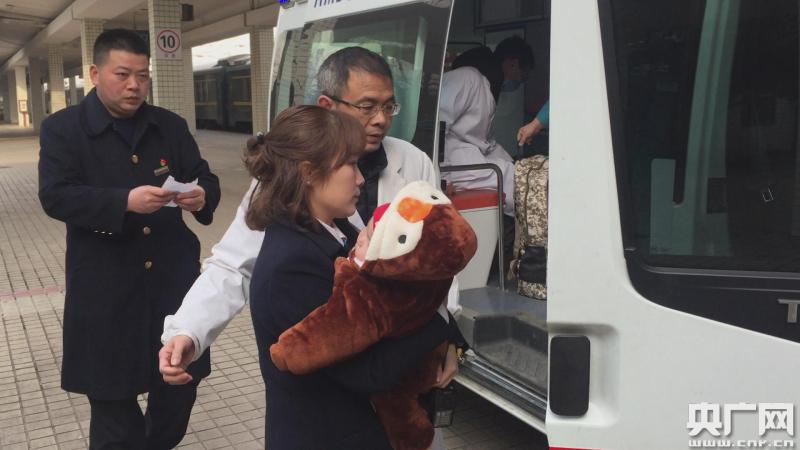 入院后,車站工作人員在旅客身上摸出手機(jī),聯(lián)系上了旅客的丈夫,另一頭,大伙擔(dān)心孩子餓著便從外面買回奶瓶,沖好牛奶,邊哄邊喂,孩子也就不哭不鬧了。由于孩子沒(méi)人照顧,值班站長(zhǎng)楊雨等工作人員便一直守候在孩子身邊。