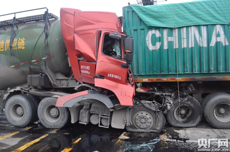 央廣網(wǎng)汕頭5月30日消息(記者鄭澍)記者從汕頭交警部門(mén)獲悉,5月30日早上,324國(guó)道潮南路段發(fā)生一宗三車(chē)碰撞致一人死亡交通事故。經(jīng)初步調(diào)查,6時(shí)50分左右,吳某昌(男,37歲,福建省永定縣人)駕駛一輛閩F籍重型半牽引車(chē)沿324國(guó)道從潮陽(yáng)往普寧方向行駛,途經(jīng)324國(guó)道潮南區(qū)民生醫(yī)院路口時(shí),碰撞到前方正在等紅綠燈的粵D籍重型半掛牽引車(chē)和粵V籍輕型廂式貨車(chē),造成吳某昌駕駛的車(chē)輛駕駛室嚴(yán)重變形。