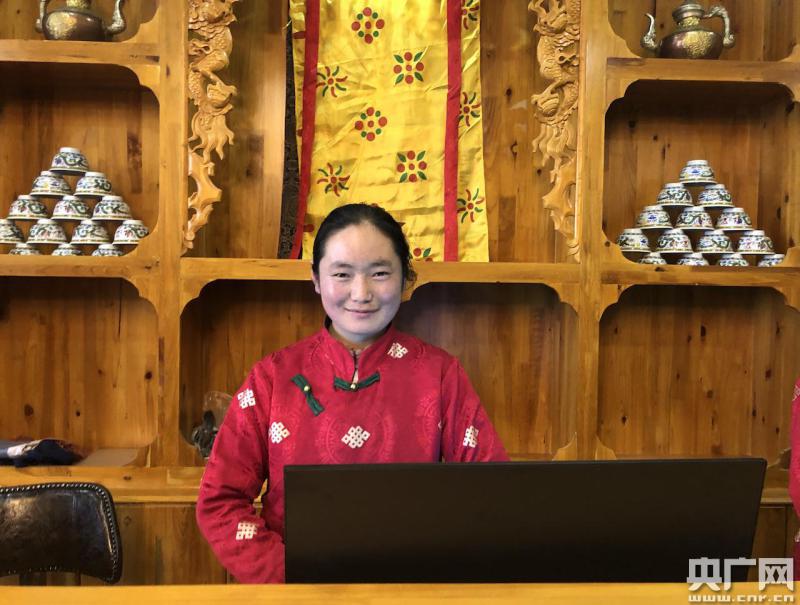 賓館前臺服務員格日措(央廣網記者 劉澤耕 攝)