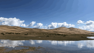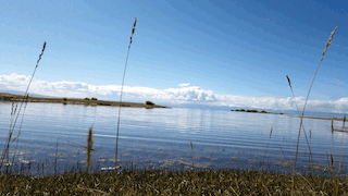 移步景區內,棧道、公廁、觀景平臺等設施不見蹤影,只見到保護區的監測人員正在對遷徙期的水鳥進行統計和監測。來到沙島景區的核心區,記者腳下松軟金黃的沙丘在高原上綠意盎然。野花野草在風中搖曳,和煦的陽光泛在湖面上,閃著璀璨的粼粼波光,湖面上倒映著藍天碧云的圖景。