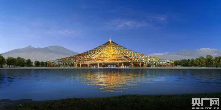建成后的演藝中心將與背后的雪山相映形成新景觀(央廣網發 通訊員劉琳 攝)