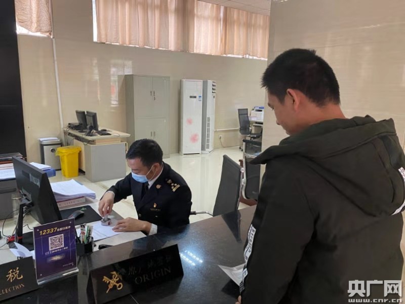 河口海關關員對打印完成的原產地證書加蓋印章(央廣網發 畢然供圖)