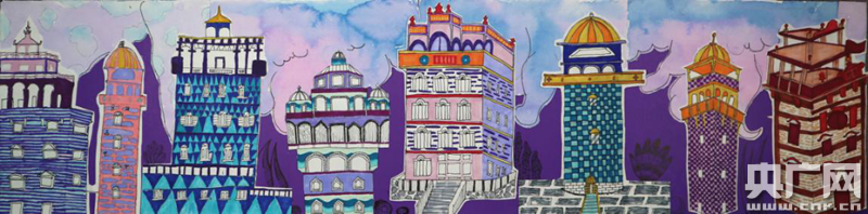 以開平碉樓為創作元素的長卷作品(央廣網發 通訊員供圖)