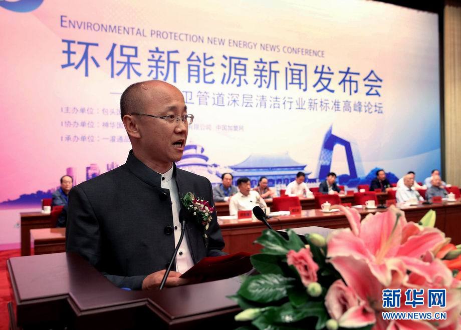 9月20日,內蒙古自治區“一灌通”品牌運營有限公司董事長薛生厚介紹管道清潔創新經驗。新華網發(王 超 攝)