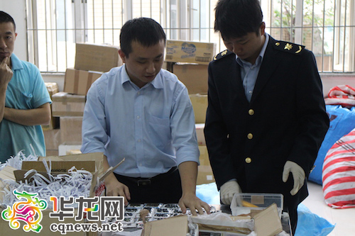 檢疫人員打開郵包清點被截獲的物品。 重慶出入境檢驗檢疫局供圖 華龍網(wǎng)發(fā)
