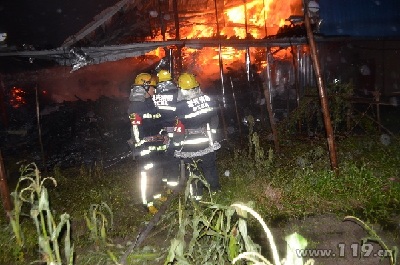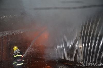 消防官兵到達現(xiàn)場后發(fā)現(xiàn),著火的是一彩鋼板結(jié)構(gòu)包圍的廠房,里面堆放了大量木製品等易燃物品,現(xiàn)場濃煙滾滾,火光沖天,雖然當(dāng)時天空飄著小雨,但是當(dāng)時風(fēng)力較大,火勢呈蔓延趨勢。指揮員立即指揮:將彩鋼板結(jié)構(gòu)的墻壁切割出窗口,然后架起水槍對著火木製品進行衝擊;并利用水槍對著火廠房進行冷卻降溫,從各個方向?qū)饎葸M行堵截,阻止火勢向周邊蔓延。經(jīng)過消防官兵近一個半小時的持續(xù)戰(zhàn)斗,火災(zāi)最終被全面撲滅。為防止復(fù)燃,消防官兵們繼續(xù)用水槍跟蹤冷卻過火木材堆垛,確保不會復(fù)燃。