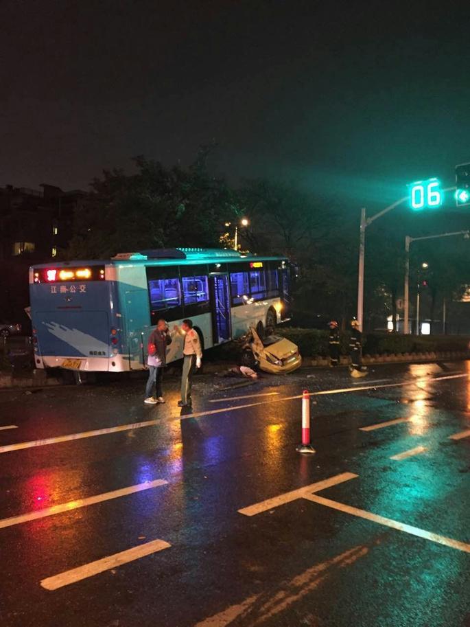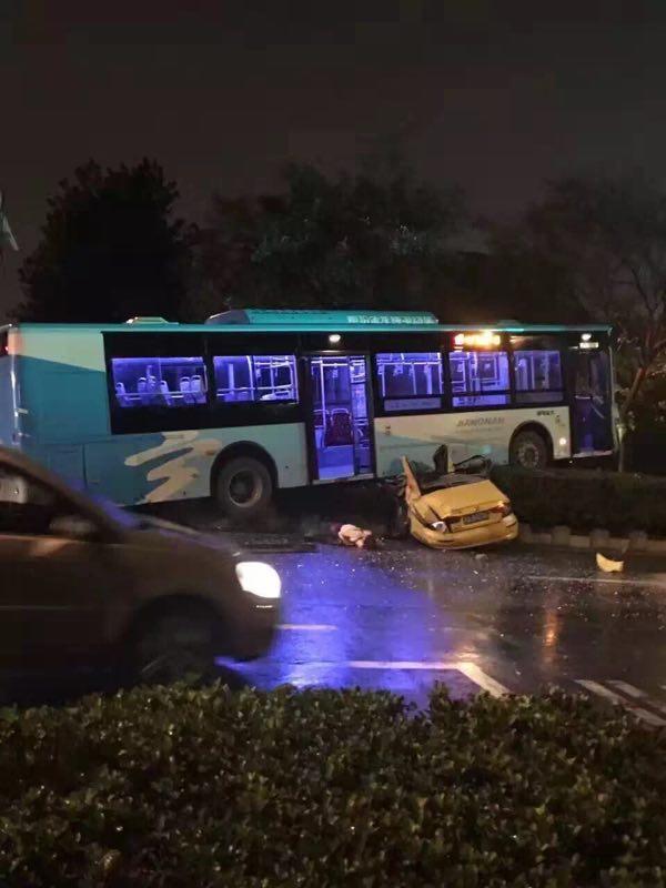 (原標題:南京仙林一公交車碾壓出租車 目擊者:2人當場死亡)