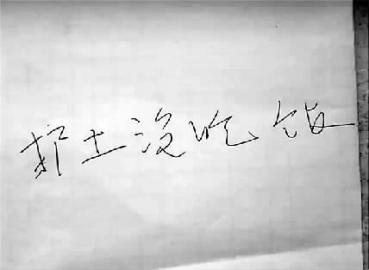 田夢(mèng)園似乎理解了老人的意圖,把筆和紙遞到了老人的手里,老人隨后用顫顫巍巍的手寫出了“護(hù)士沒吃飯”五個(gè)字。