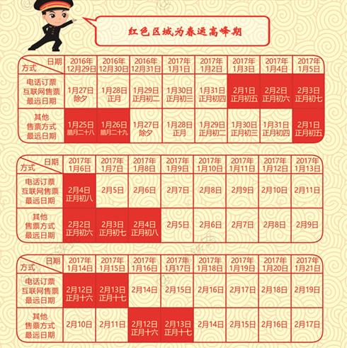 中新網(wǎng)北京1月4日電(記者 李金磊)春運(yùn)迎來返程購(gòu)票高峰期。自今日起,通過網(wǎng)絡(luò)和電話就可以購(gòu)買春節(jié)假期最后一天,也就是正月初六(2017年2月2日)的火車票了。需要注意的是,多地鐵路局臨時(shí)加開部分旅客列車,沒有搶到火車票的旅客可以關(guān)注下臨客。