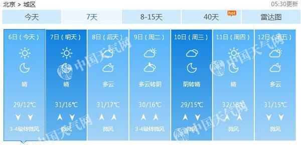 未來一周,北京最高氣溫都將維持在30℃左右,最低氣溫16℃左右。北京常年平均入夏時間為5月19日,2016年于5月16日入夏,夏天正悄悄地走來。