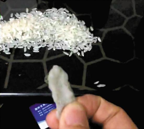 陳先生傳給本報記者的視頻截圖,視頻顯示煮熟后的“大米”捏不爛