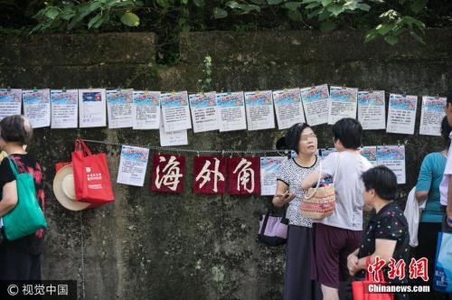 資料圖:2017年7月15日,杭州一條馬路兩邊,數百名大伯大媽前來“相親”,現場還特別設置了海外學子的專區,貼著的大部分都是70后80后年輕人的信息。 視覺中國
