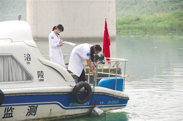 涪陵區生態環境監測站工作人員在烏江上開展水環境監測