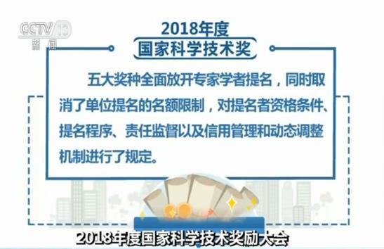 央視網(wǎng)消息:2018年是《關于深化科技獎勵制度改革的方案》進入正式實施階段的第一年,在遵循現(xiàn)行《國家科學技術獎勵條例》的前提下,2018年度國家科學技術獎積極推進落實了提名制、定標定額評審等改革措施和創(chuàng)新舉措。