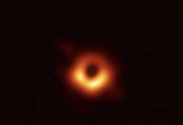 2019年4月10日,包括中國在內,全球多地天文學家同步公布了“事件視界望遠鏡”(EHT)項目的第一項重大成果:人類有史以來獲得首張黑洞照片。該黑洞位于室女座一個巨橢圓星系M87的中心,距離地球5500萬光年,質量約為太陽的65億倍。它的核心區域存在一個陰影,周圍環繞一個新月狀光環。