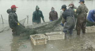 “起網啰!”2月10日,在武漢市東西湖區漁水情生態漁業養殖基地,十幾名工人齊聲吆喝,收網抓魚。