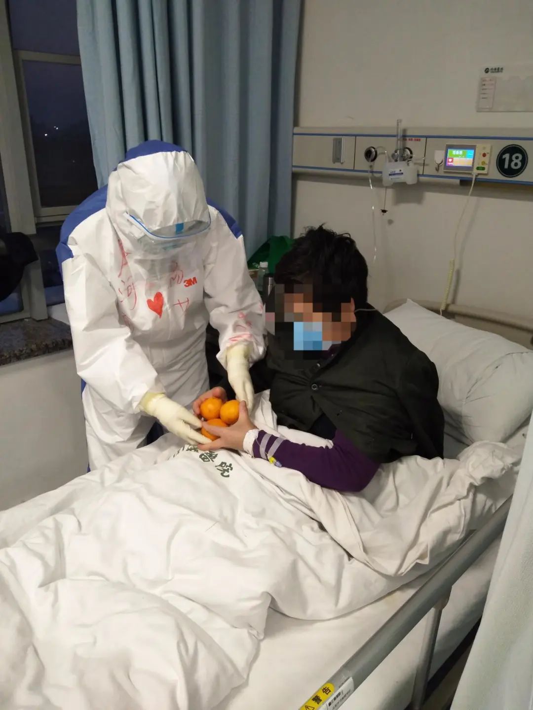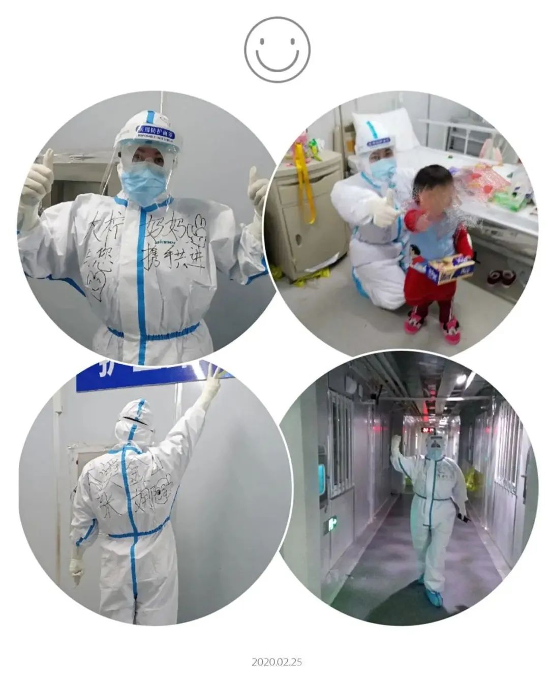 昨天,小可樂和她的媽媽出院了,我真的特別高興。小可樂今年只有兩歲零八個月大,是我們病區最小的小寶貝,我們都把她當成自己的孩子來疼愛著,上班前和隊友總要商量帶什么玩具寶貝會喜歡。第一次見她的時候她忽閃著那雙水汪汪的大眼睛,正看著我防護服上畫的笑臉,見小可樂非常喜歡,我便畫了一個笑臉送給她,小可樂開心地唱起了歌。聽著孩子稚嫩的歌聲,我也更加思念女兒了。來到武漢,思念、牽掛,常常使我失眠,但只要想想這里有太多人需要我,雖然控制不住淚水,我也會站在鏡子面前握緊拳說:“要堅強,要加油,勝利就在不遠的前方!