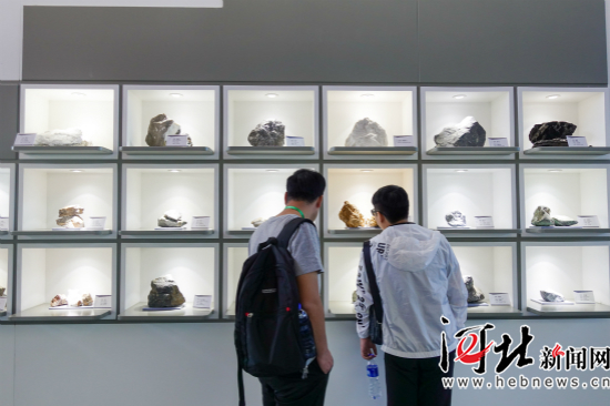 圖為采訪團(tuán)記者在白石山地質(zhì)博物館參觀。攝影:趙杰
