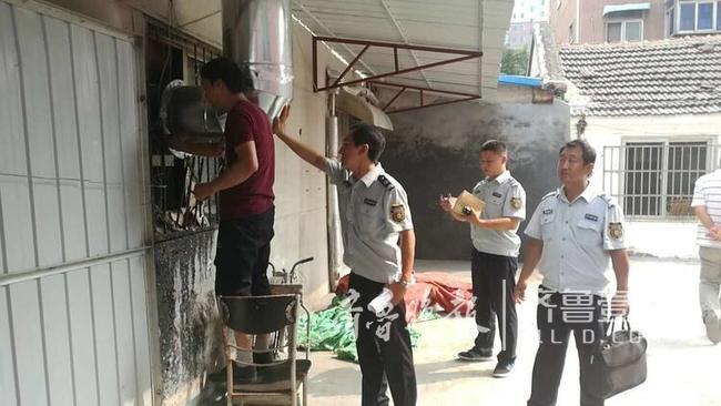 濟南天橋區執法一中隊于8月16日向該家餐飲業戶下達了《濟南市天橋區人民政府關于依法關閉違法餐飲項目的通告》、《告知書》、《責令限期整改通知書》;同時區城管執法局一中隊組織執法人員對該處餐飲業戶經營房內作業物品、加工材料、門頭牌匾等進行了搬離及拆除,并對該處房屋進行了斷水斷電措施,依法對該業戶進行關門停業。