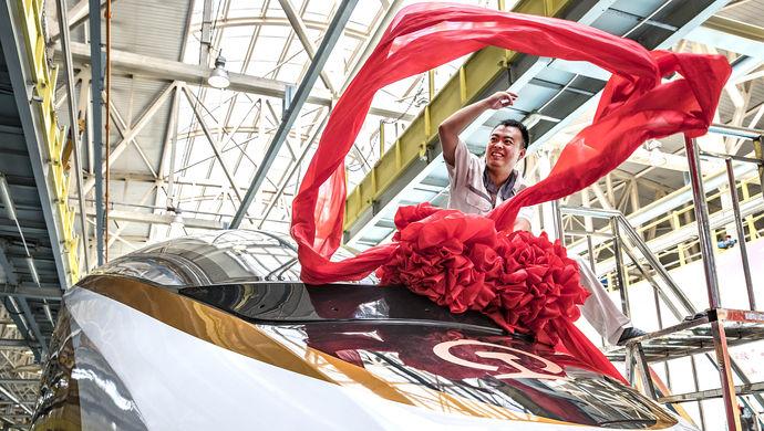 與“和諧號”相比,“復興號”設計壽命提高了10年,在車體斷面增加、空間增大的情況下,按時速350公里試驗運行,列車運行阻力下降7.5%以上,人均百公里能耗降低17%,車內噪聲下降1到3分貝……如此多驕人的成績從何而來,又歷經了哪些挑戰?