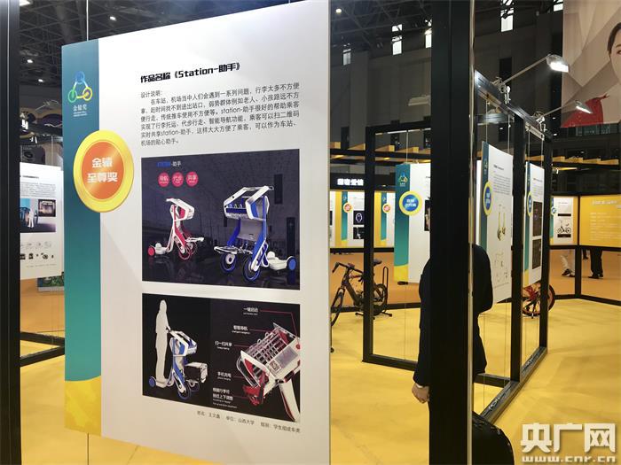山西大學學生王文鑫設計的“Station-助手”獲得本屆大賽最高獎項“金轅至尊獎”。(央廣網記者 唐奇云 攝)