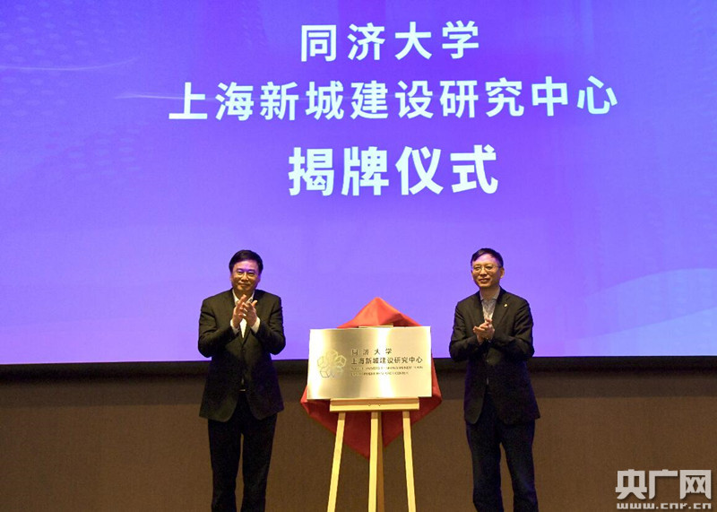 上海市副市長湯志平(左)與同濟大學黨委書記方守恩(右)共同揭牌(央廣網發 同濟大學供圖)