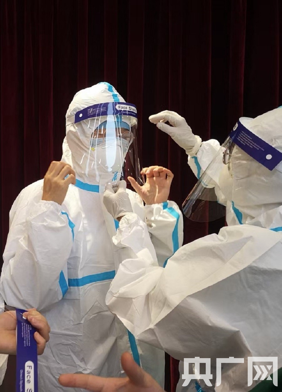 但是,當她把穿著防護服的照片拿給女兒看,女兒一個個指,最后才能認出她來。“穿著防護服,大家都一樣,如果不看后面的名字,隊友之間也認不出。”