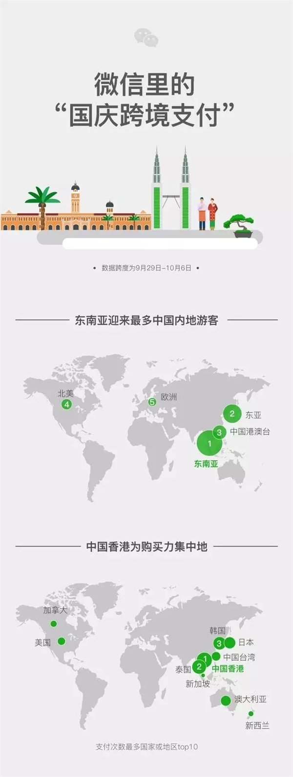 國慶中秋長假結束之后,微信官方發布了一份“國慶微信跨境支付報告”,全方位展示了國人境外消費圖景。