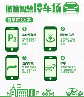 除了解決停車難、找車難、繳費排隊難等行業內問題,微信智慧停車解決方案還賦予了停車行業一種以點到面的輻射能力,實現了停車場周邊及垂直領域的全新商業模式。