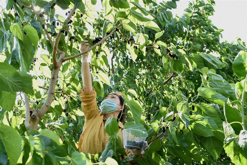 游客采摘桑葚(央廣網發 薊州區供圖)