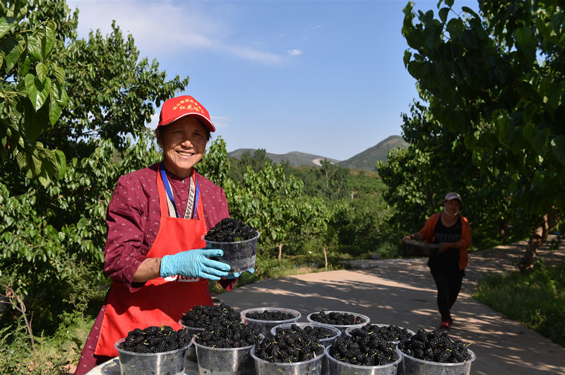 近年來,為了讓小桑葚走出大山,鎮里幫助修建了環山公路的同時,組織天津、北京的農業專家幫助農戶嫁接優良品種。如今,西史各莊村桑樹種植面積達3000畝,年產桑葚近250余萬斤,產值1000余萬元,小桑葚成為群眾增收致富的大產業。下一步,村里還將打算建立冷庫,購置烘干設備,延長桑葚的銷售期,進一步提高農民收入。