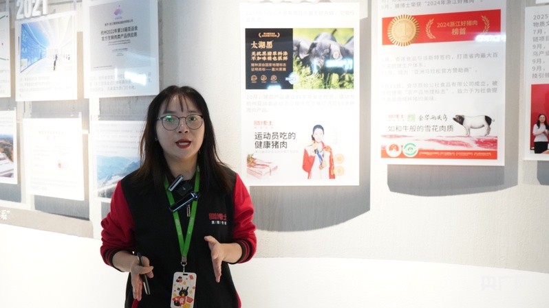 浙江青蓮食品股份有限公司副總裁繆雨向記者講述企業的“成長”故事(央廣網記者 項楠 攝)