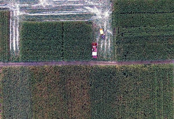 金秋時節,河北省進入秋糧收獲高潮,田地里隨處可見農民忙碌的身影。
