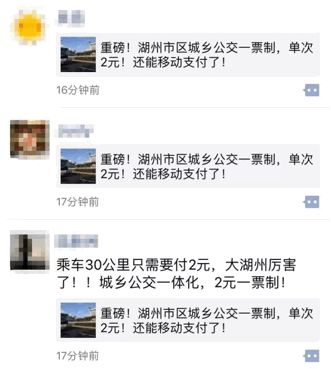 湖州城鄉公交一票制的消息曾在朋友圈刷了屏